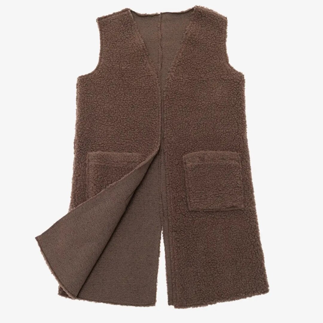You will love this stylish long vest made of Merino sheep wool, and it will become an indispensable part of your everyday outfit during colder days. Liven up your wardrobe with this modern fluffy item.