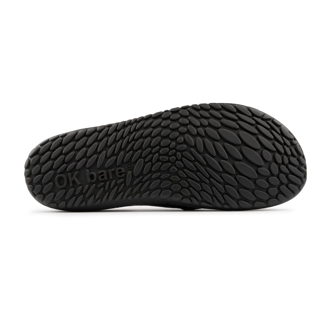 The barefoot cut of the shoe has a wide toe box, and the outsole is highly flexible for free movement of the foot. The shoes have two elastic bands on the instep to stretch the upper and make them easier to put on.