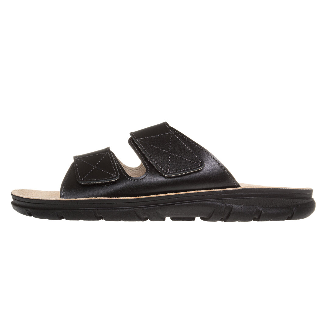 Elegant and simple, yet also well-designed. The extra-wide footbed is suitable for people who need a wider fit and for those who suffer from swelling or other foot problems. The raised edge of the footbed protects the toes and the heel from impact and injury.
