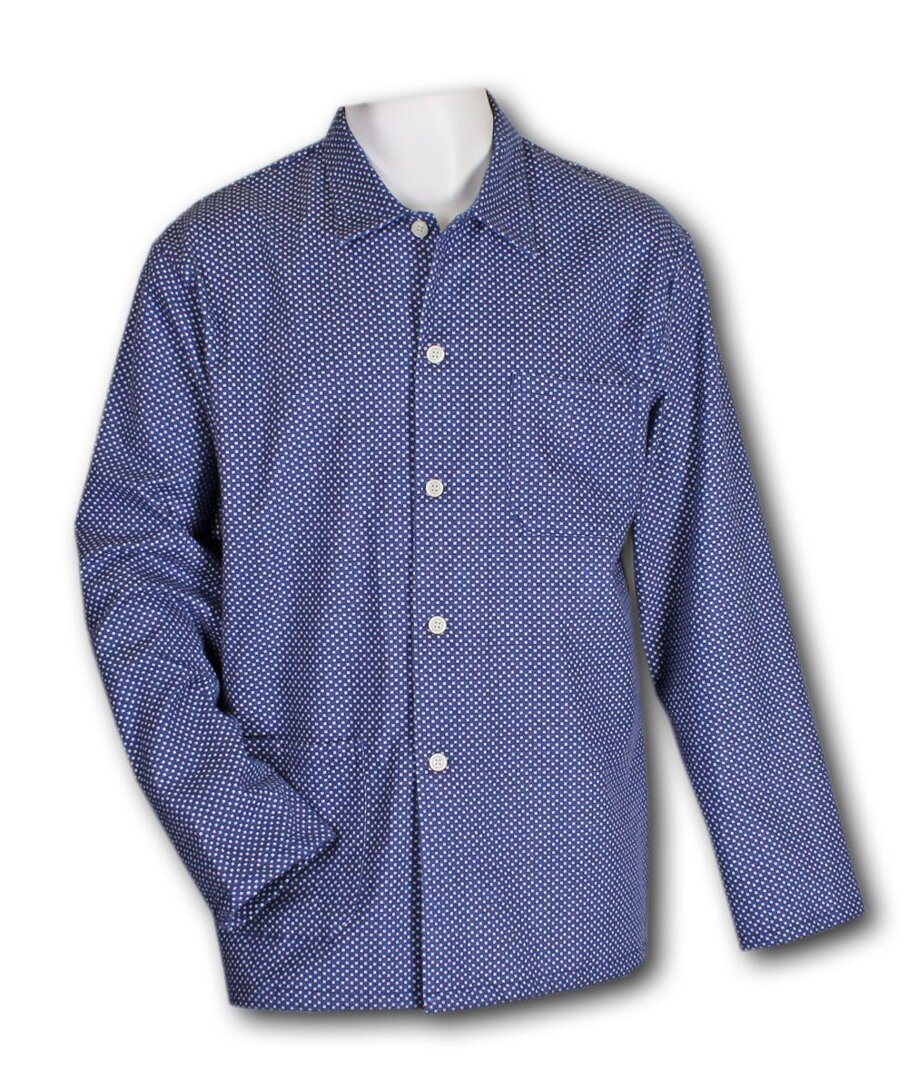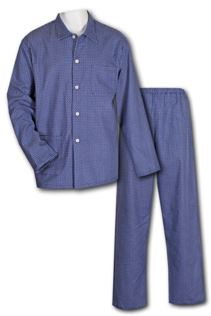 Men's flannel pajamas with long sleeves with pattern, blue