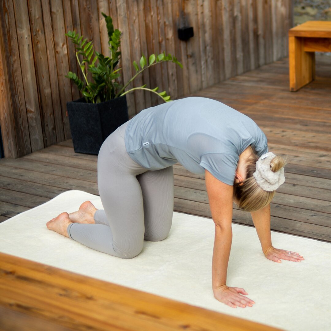 The yoga mat made of Merino sheep wool is the right thing for all those who love this relaxing excercise and want to make it perfect. The bottom is lined with anti-slip material, so it holds perfectly on a carpet and a hard floor. The surface of the mat is made with the finest Merino sheep wool; it is 1.5 cm high, making exercising very comfortable. The mat is equipped with two rubber bands for easy storage in a rolled-up condition, and you also get a cotton case with a handle, so you can hang the mat over your shoulder and go to your favorite yoga class :-).