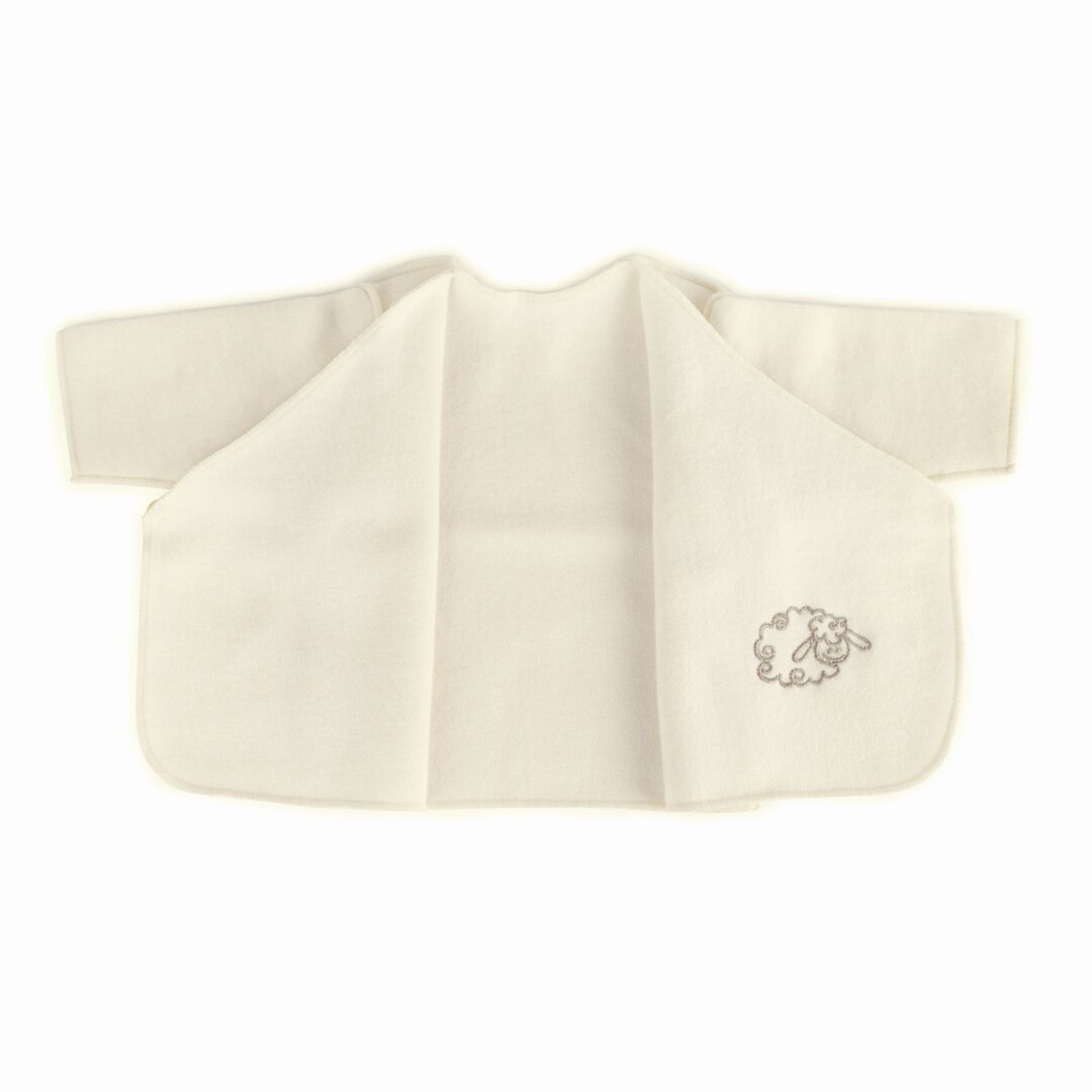 Our wrap-over jacket for newborn babies in natural white or beige colour is made of 100% Merino wool, well-known for being soft and gentle on delicate skin, making it perfect for babies. This jacket is ideal for use both in winter and in warmer months, as Merino wool is great at temperature control.