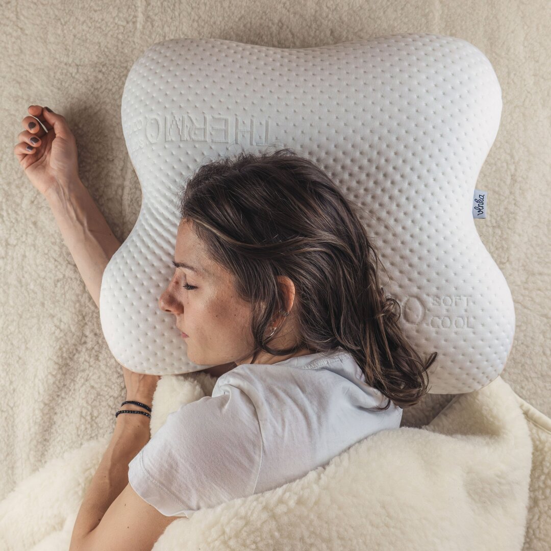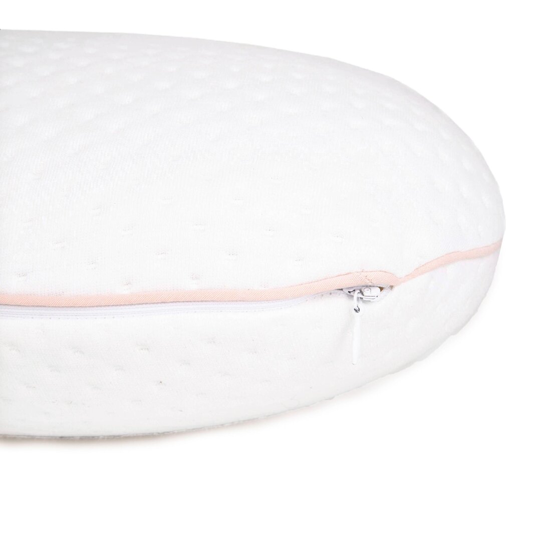 This specially shaped pillow is suitable for side and stomach sleeping. If you are lying on your side, you can put the pillow not only under your head, but also under your neck, thus relieving your cervical spine. When lying on your stomach, you can comfortably hug the pillow with your arms thanks to its shape.
