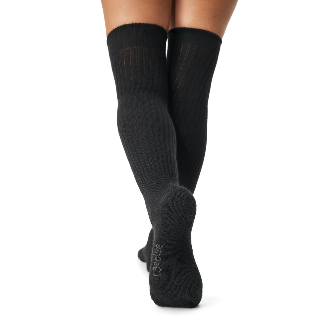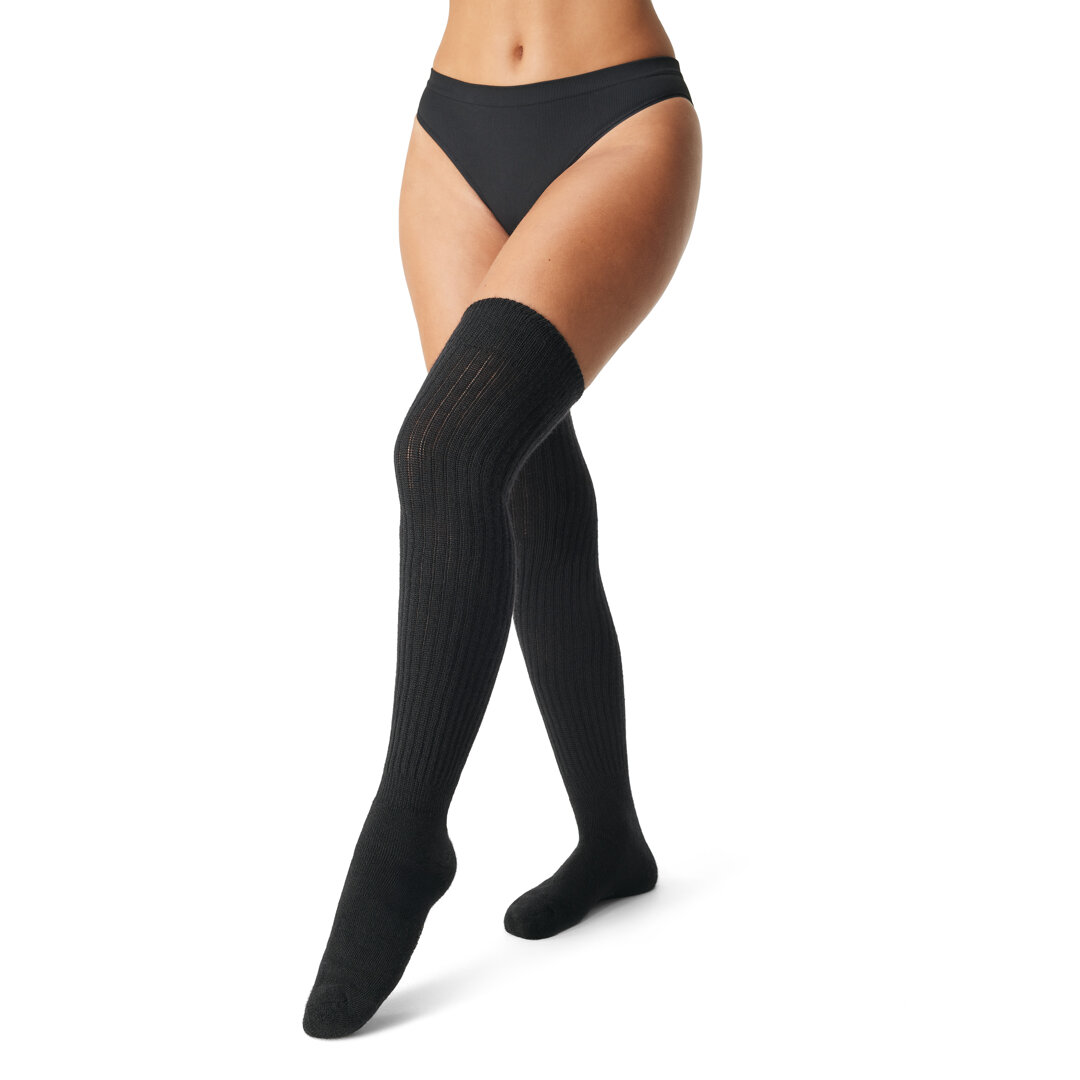 Even for long walks in cold weather, over-the-knee socks will keep your feet and calves warm. The wide hem does not cause pressure points, so over-the-knee socks are also suitable for all-day wear. Merino sheep wool has many advantages, the most important being temperature stability and moisture wicking.