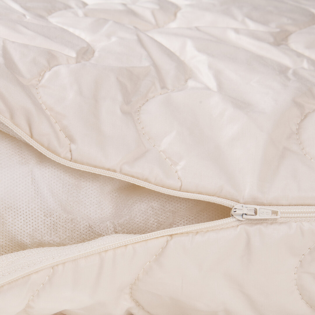 The cover of this premium pillow is made of pure cotton in a beautiful cream colour. The zip around the pillow allows you to remove part of the filling, should you wish to adjust the thickness. In addition, you can remove the cover completely and wash it, either by hand or in the washing machine. We also recommend you air your bedding regularly.