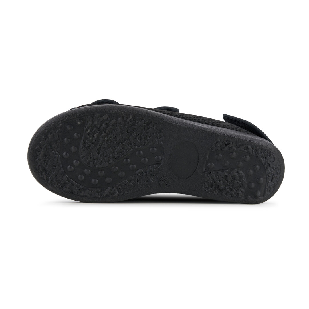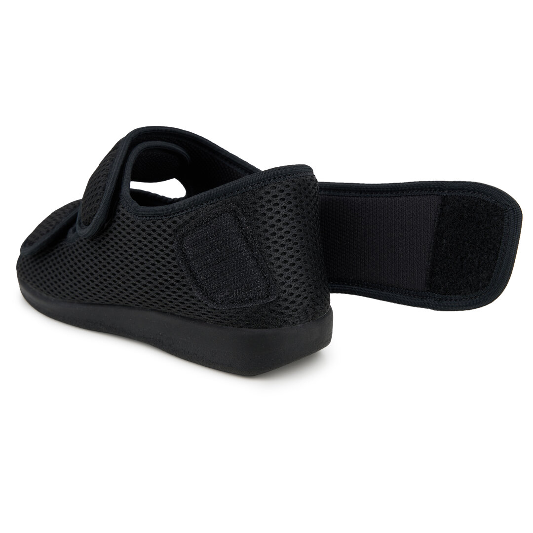 Are you suffering from foot-related conditions such as bunions or diabetes? Or are you struggling with swollen feet? If so, our bandage shoes are the perfect choice for you. Thanks to the breathable material, the foot can breathe throughout the day. The wide fit gives the foot plenty of room, and Velcro fasteners allow you to adjust the shoes as needed. The anatomically shaped insole wicks away moisture and keeps your foot dry. It is made of harmless material and is OEKO-TEX 100-certified. In addition, it is removable.