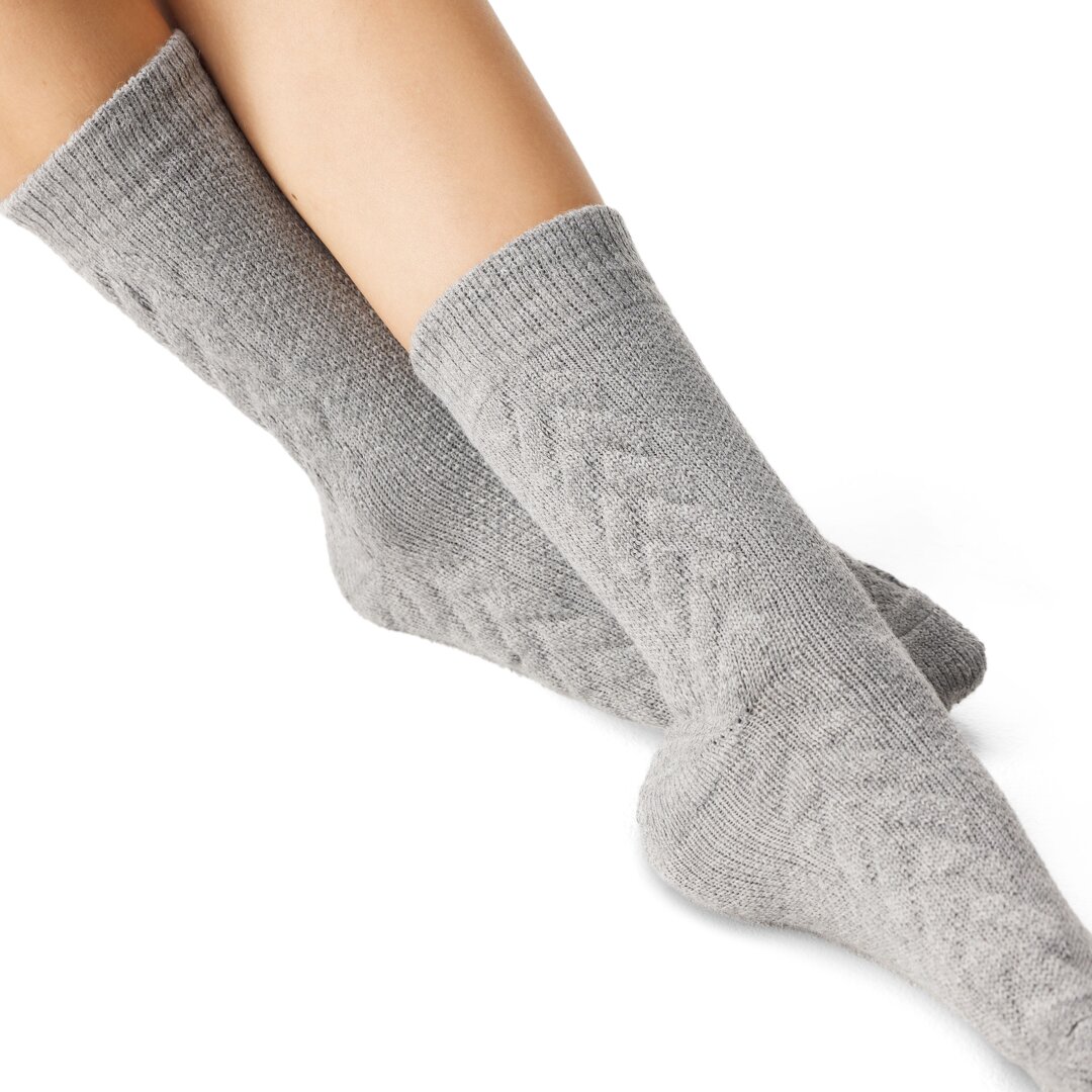 The pattern of these socks imitates one of traditional knitted socks that used to be worn with folk costumes. The modern version is just as nice and will always keep your feet comfortable. The reinforced heel and toe, as well as the loose top that doesn't compress the leg mean these socks will feel nice even when worn all day.