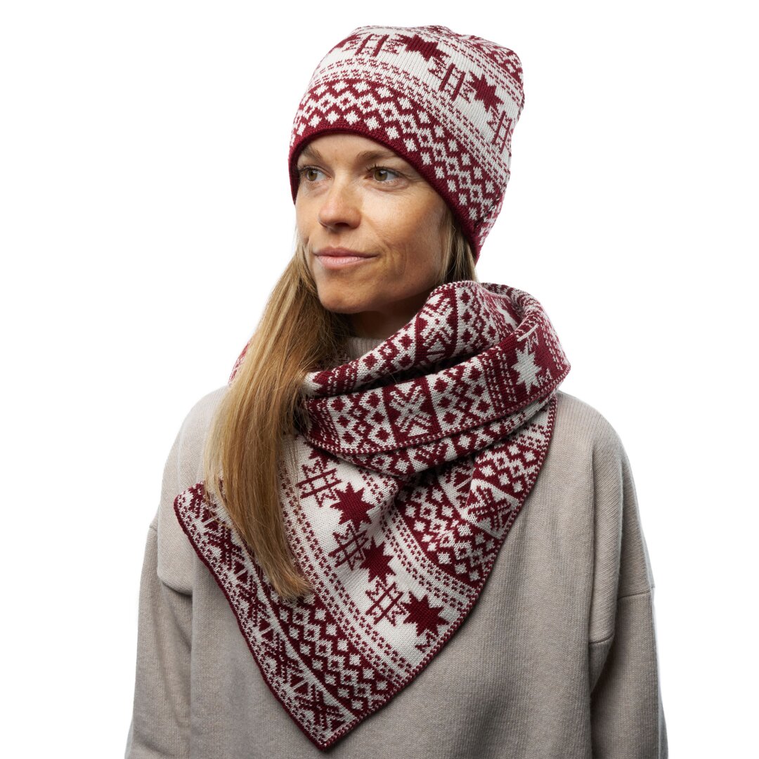 A wool hat in original Nordic design that you can only find here at Woolvilli. Merino wool wraps you up in soft and velvety comfort, keeping you warm all winter long. We also have a matching scarf and sweater from the same collection.