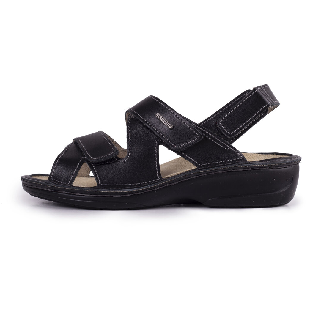 Orthopaedic insole to support the arch, high quality leather, slightly raised heel and adjustable straps - the main advantages of these sandals for ladies.