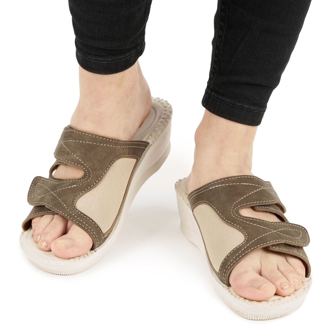 Are you looking for comfortable summer shoes that are especially wide enough for bunions? In addition to the elastic material on the side for the hallux, Milada slippers also have a soft gel insole that dampens every step of the foot.