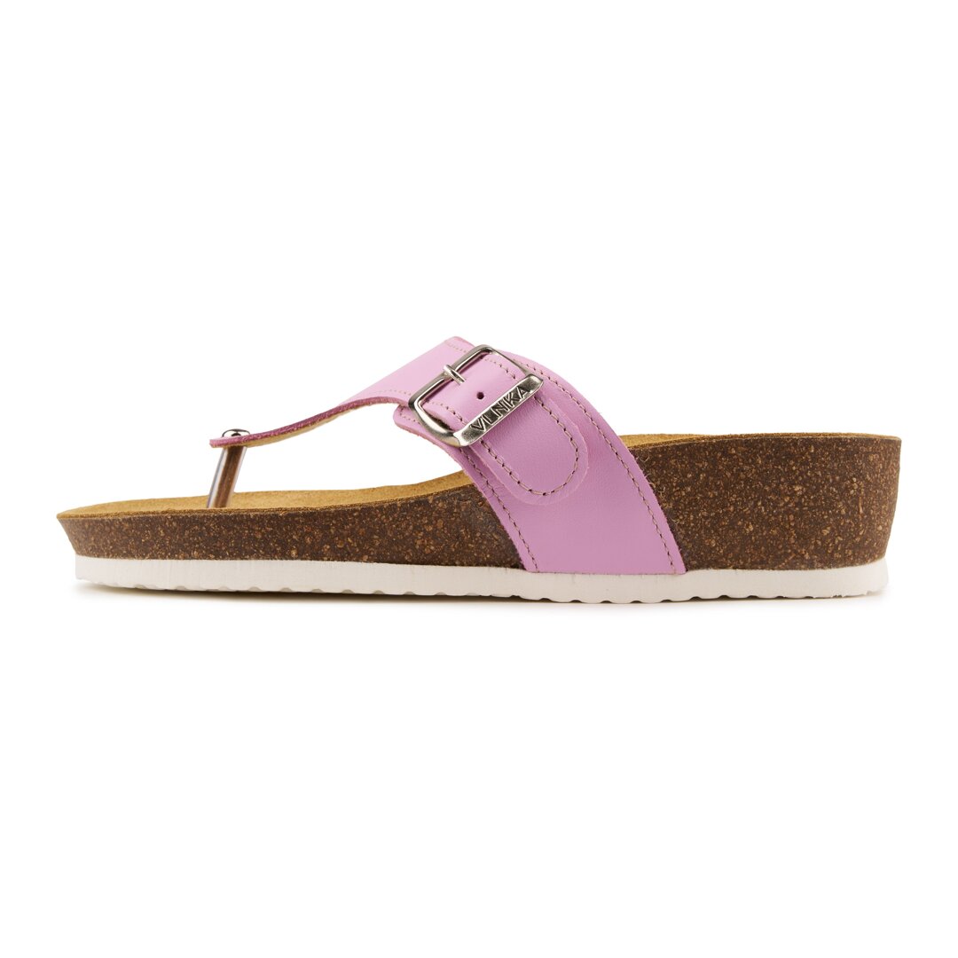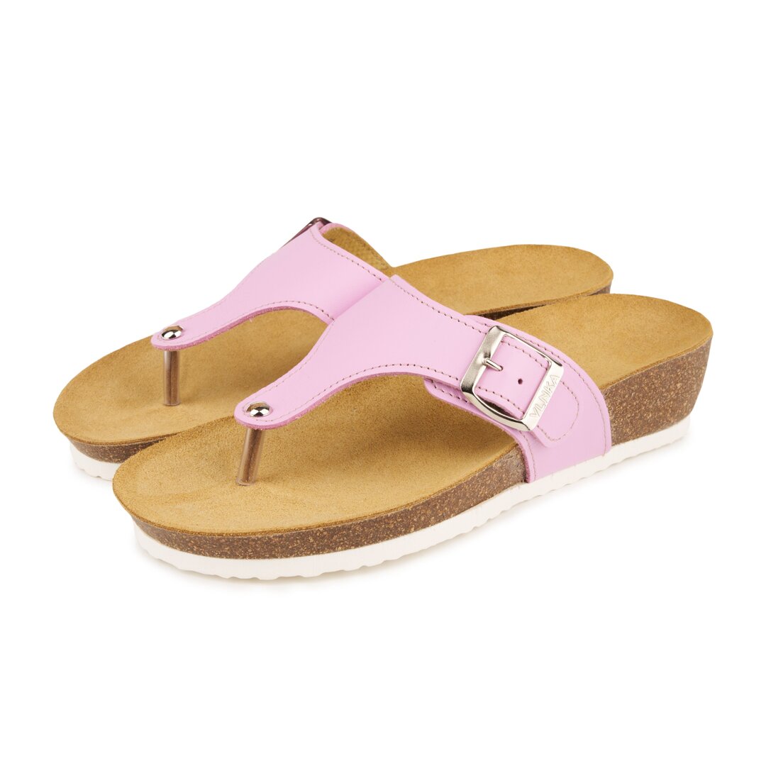 Women's leather flip-flops on cork sole on wedge Agata pink