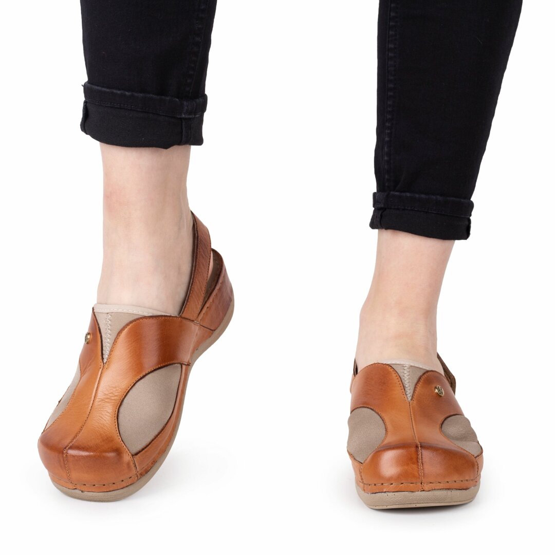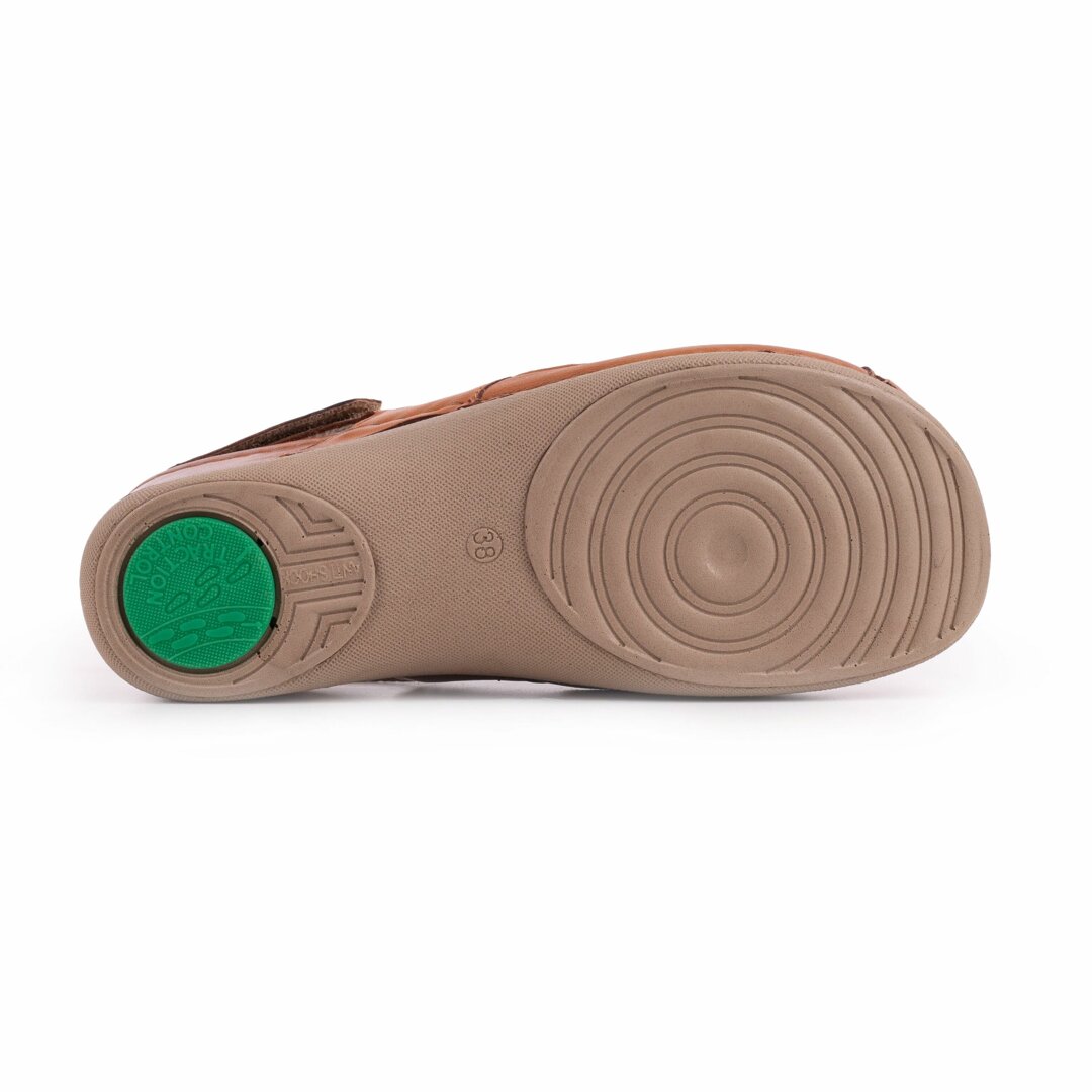 The insole is soft and slightly shaped, and together with the upper it is made of leather, so over time it adapts perfectly to the shape of your foot and will make your shoes comfortable all day long. The strap around the heel is velcro and can be tightened or loosened as needed. The sole of the sandals is firm and in the heel area it has a special treatment that is non-slip and at the same time absorbs shocks of each step. This saves the knees and other joints.