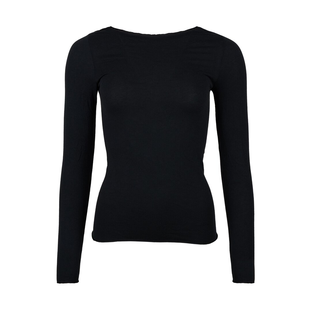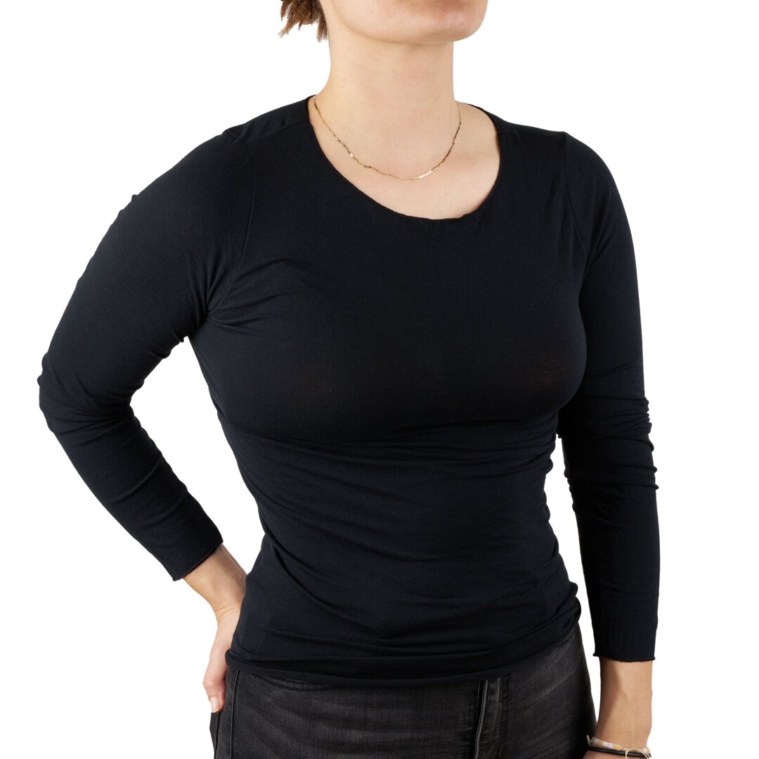 A tight-fitting T-shirt is great as a separate elegant top, but also as a warm undergarment for winter. The natural fibers modal and cashmere combine well with the man-made fibers that give the material durability, flexibility and increase its life.
