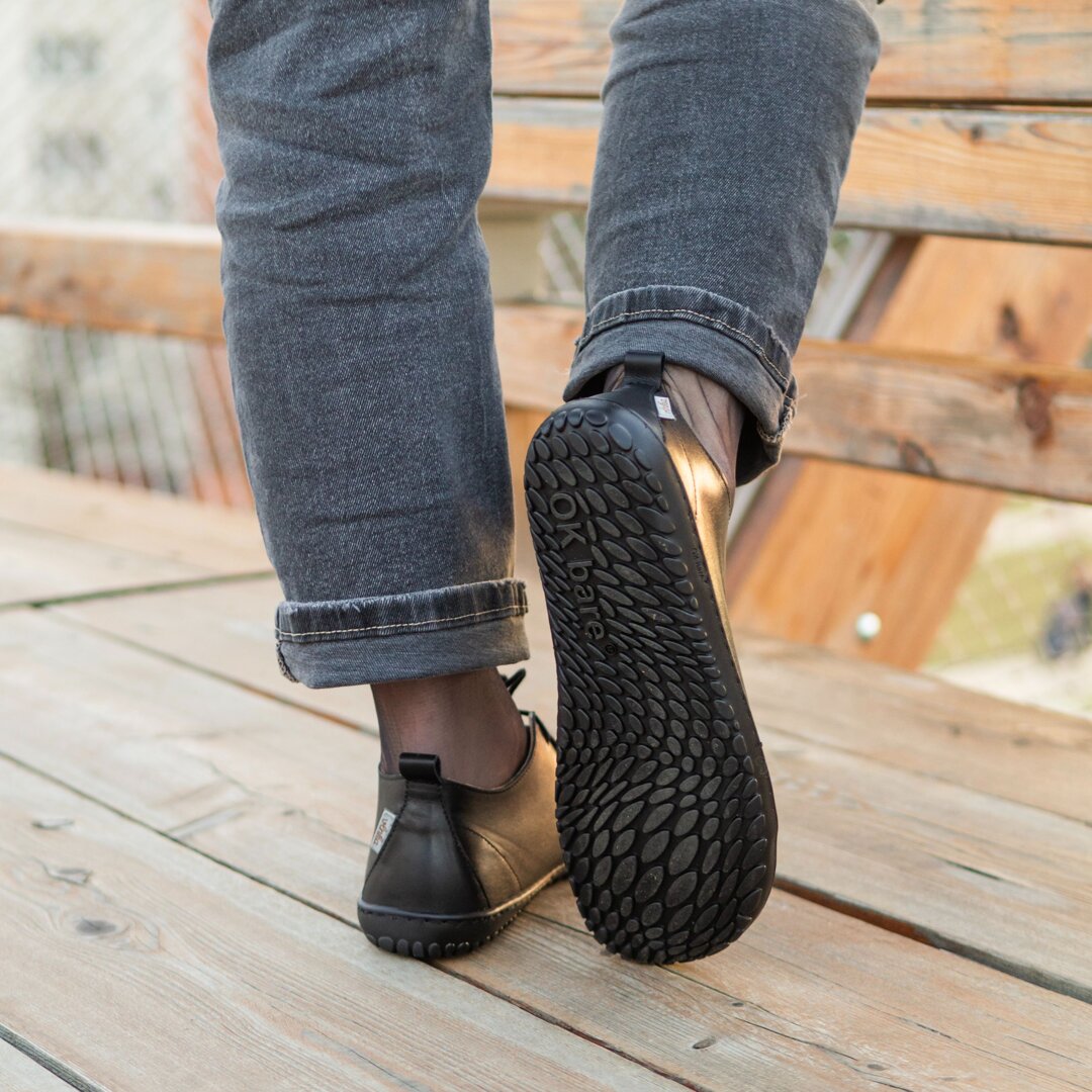 The thin, flexible sole guarantees freedom of movement and natural feel when walking. Barefoot shoes do what they say – they mimic the experience of walking on bare feet, while the anatomical design provides lots of room for your toes. Thanks to the thin sole, the shoes are also very light, lessening the strain on your feet.