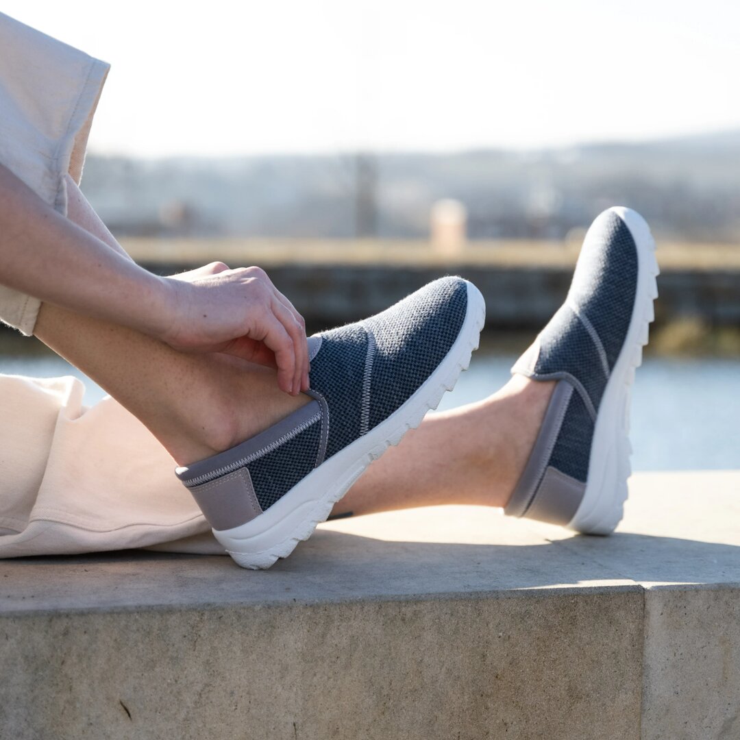 The gel insole is very soft, cushions the foot's impact as you walk and moulds for good arch support. The soft textile upper is also suitable for wide feet or hallux problems, as the pliable material adapts to the shape of the foot.