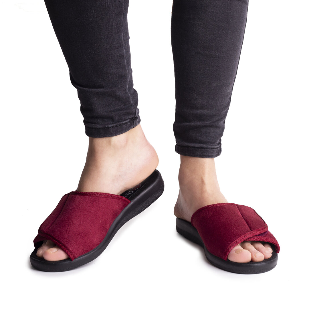 Are you looking for comfortable, light and practical slippers? These soft, open-toe slippers are suitable for anyone who is looking for wide and comfortable shoes to wear at home. Because they are so light and flexible, they will be appreciated by people suffering from various conditions affecting the feet, such as diabetes or arthritis. They are also suitable for feet that have to be bandaged due to an injury or surgery, as the velcro strap allows you to adjust the shoes to fit your feet. The anatomically shaped insole perfectly wicks away moisture and keeps the foot dry. It is made of harmless material and has the OEKO-TEX 100 certificate.