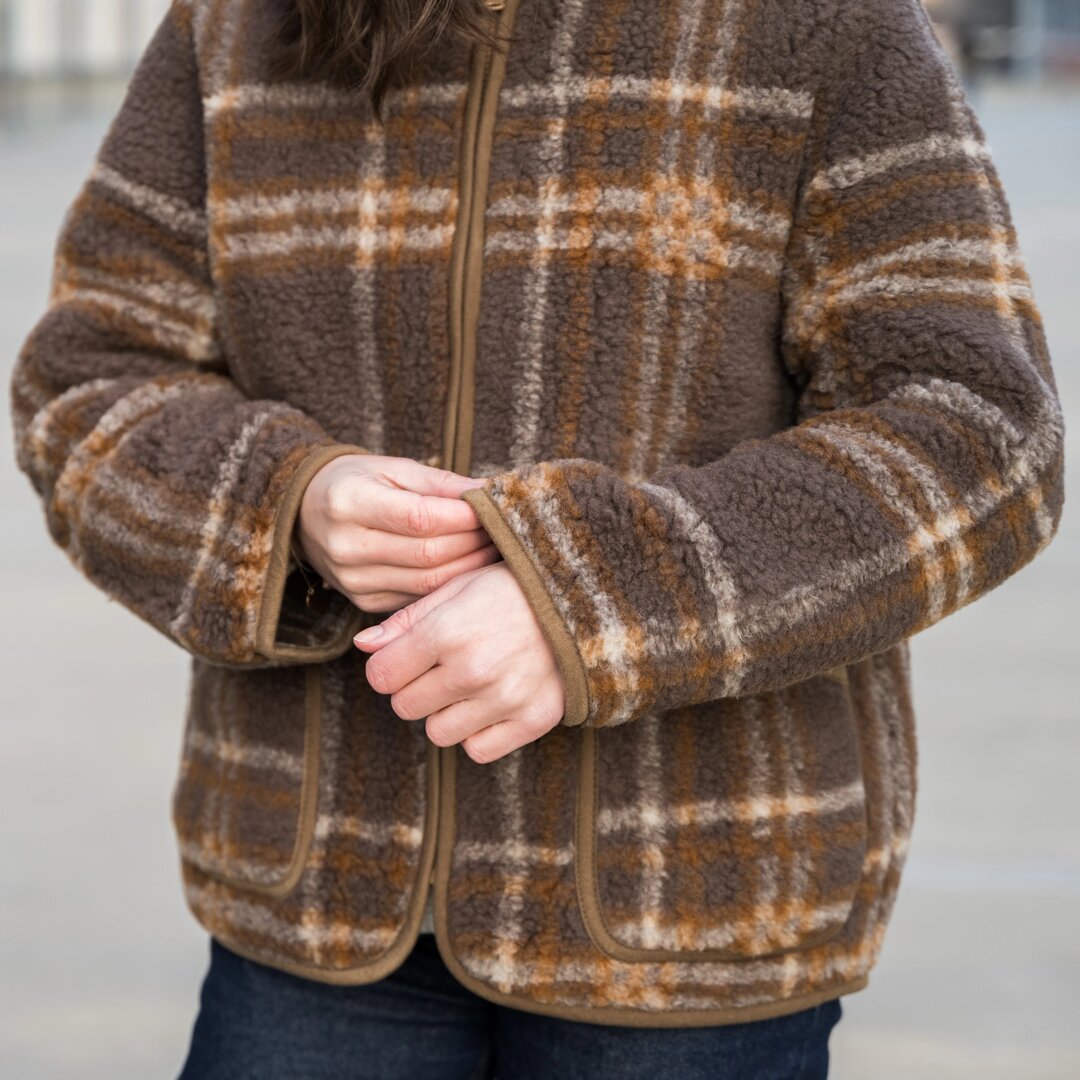Women's wool jacket checkered brown