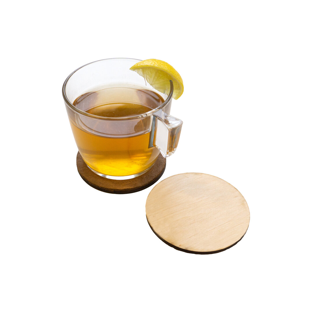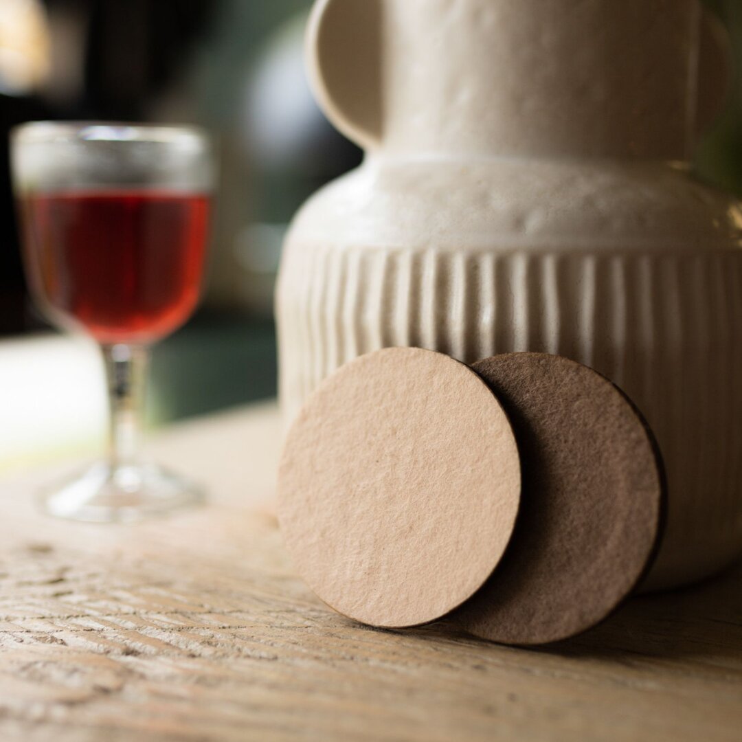 A coaster made of wood and wool felt will be appreciated by anyone who dislikes heat marks and water marks left by a cup or a glass. The wool side of the coaster protects the surface of furniture from scratches, which is especially welcome for glass tops.
