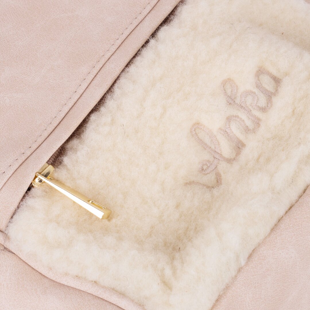 Materials: eco-leather, sheep wool, metal buckles and zippers