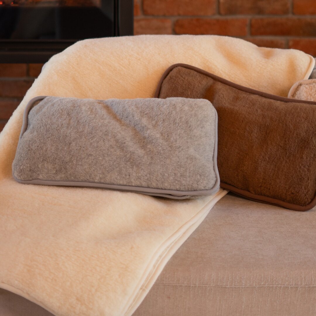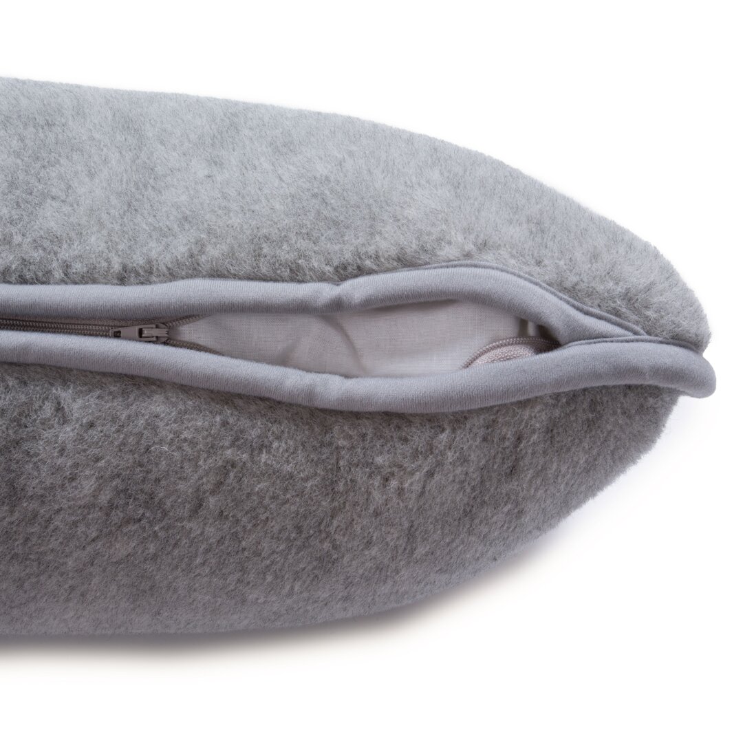 This cushion with a wool cover in a soft grey colour can be used in both the living room and bedroom, it goes well with different interior styles. The dry heat of sheep’s wool helps with aches and pains as well as with healing injuries.