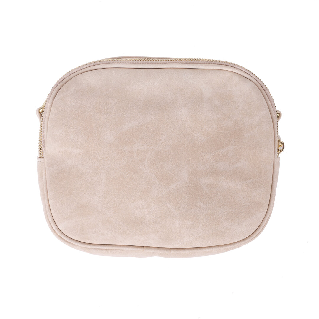 The handbag has one large pocket with two zippers on the top edge and a small interior pocket for small items. The strap is made of eco-leather and cotton in a natural color. You can adjust the length of the shoulder strap to your liking, or you can detach the strap completely and carry the handbag in your hand.