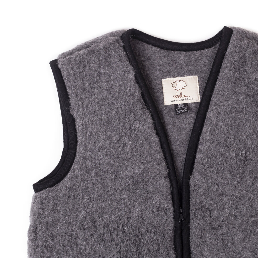 This zip-up wool vest in grey colour with a black trim is made of soft 100% Merino wool which means you will never feel cold, even on the most unpleasant and windy winter days. The neutral grey colour is suitable for both men and women. It is also very stylish and thanks to the material, it is great for use in autumn and winter.