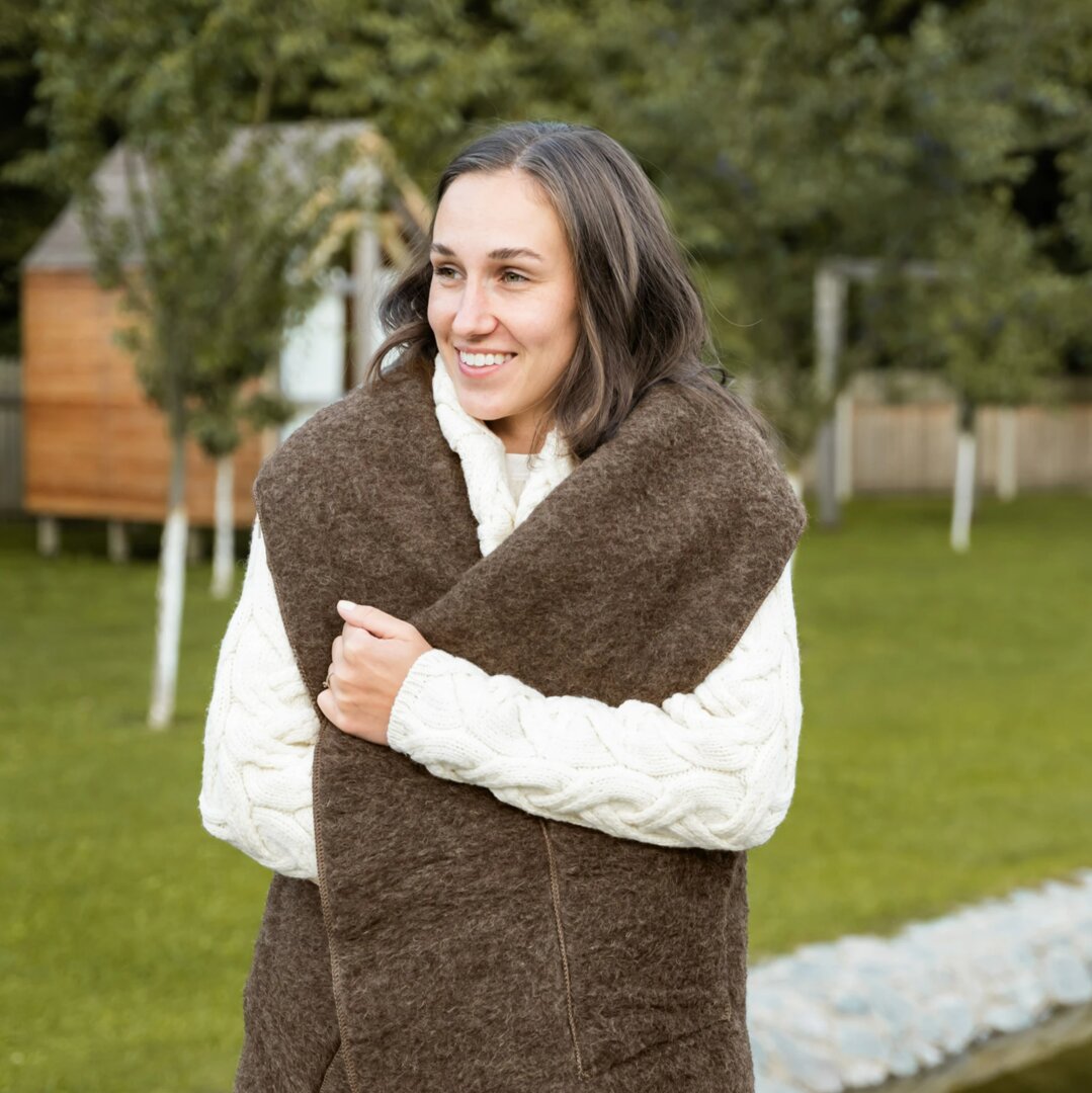 The warm warmth of sheep wool and a fashionable addition to your wardrobe. This wrap vest playfully fulfils both conditions. Whether you wear the vest at home or out and about, it will help you keep a stable temperature and while also looking good.